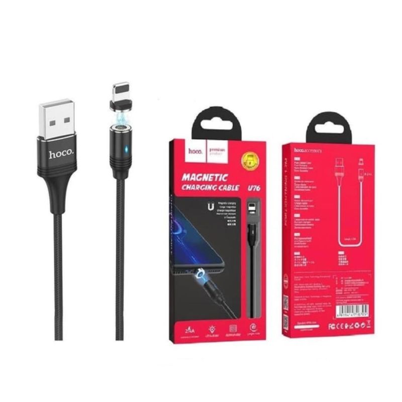 Usb-cable iPhone 5 HOCO U76 Fresh magnetic 2.4А 1.2m (круглий) Black