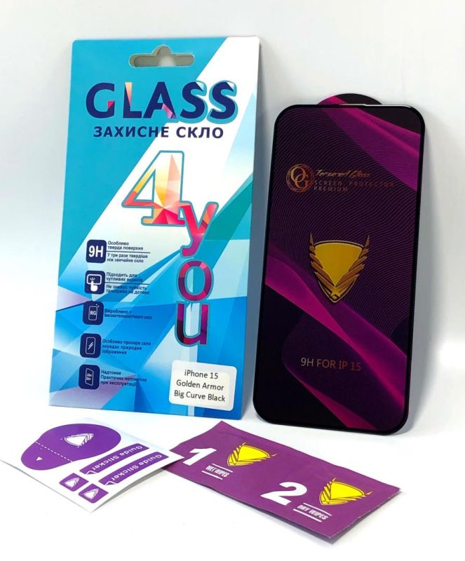 Захисне скло iPhone 15Pro Golden Armor Big Curve Black 4you