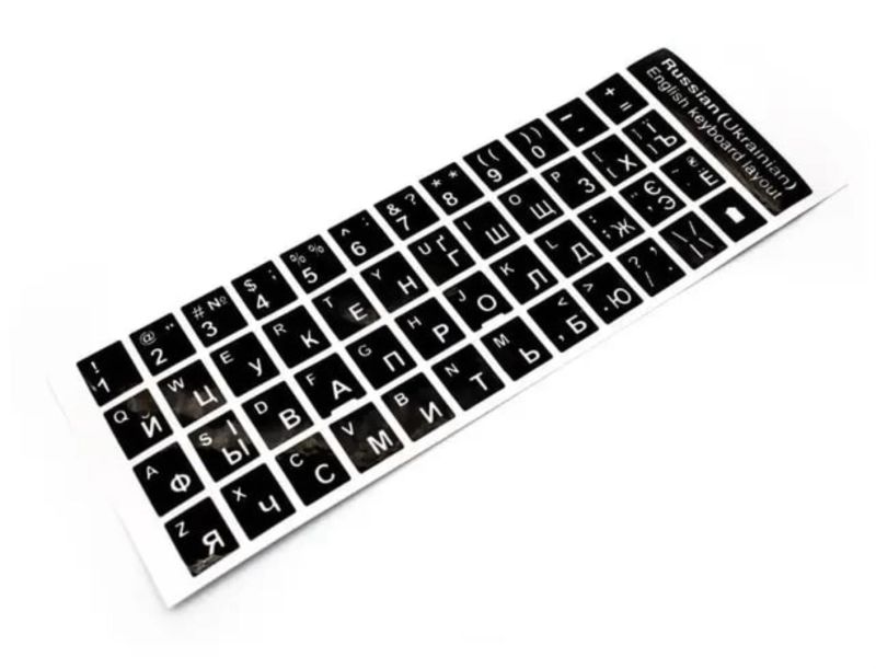 Наклейки на клавіатуру російська/українська/англійська мова (алюмінесцентні)