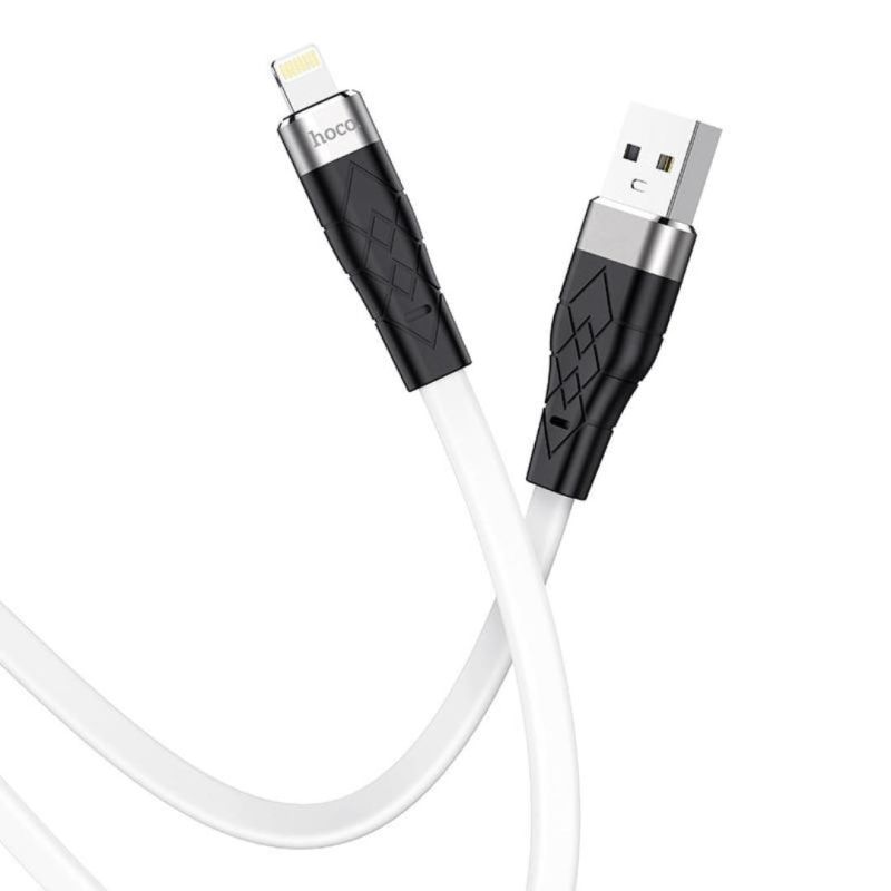 Usb-cable iPhone 5 HOCO X53 "Angel" 2,4A 1m (плоский,метал.коннект) White