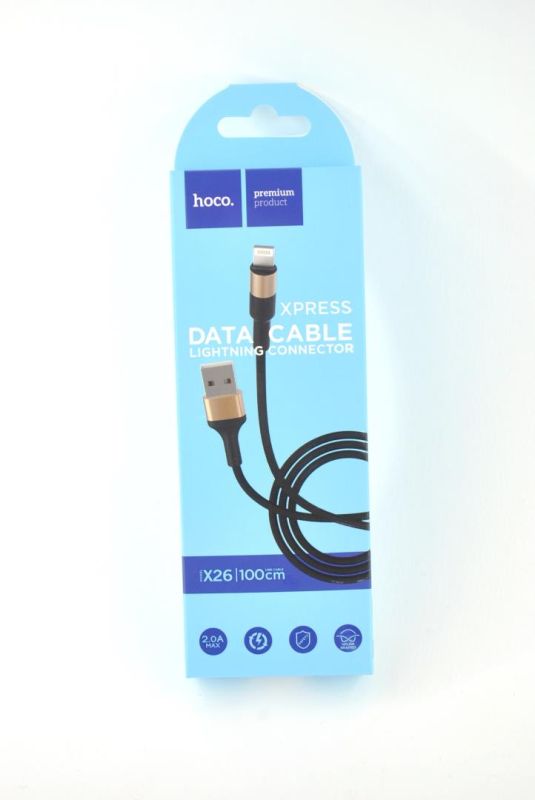 Usb-cable iPhone 5 HOCO X26 Xpress 2.4A 1m ( круглий, тканинний ) Black / gold