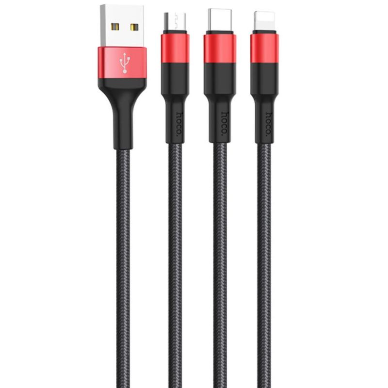Usb-cable 3 in1 Micro USB / iPhone5 / Type-C HOCO X26 Xpress 2A 1m (круглий,тканинний) Black/red