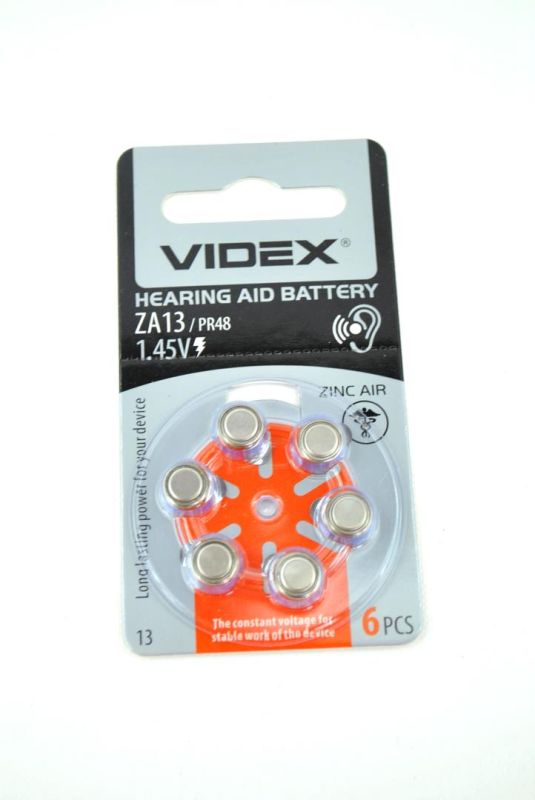 Батарейка Videx ZA13 (PR48) повітряно-цинкова (6 в блістері, 60 в упак.)